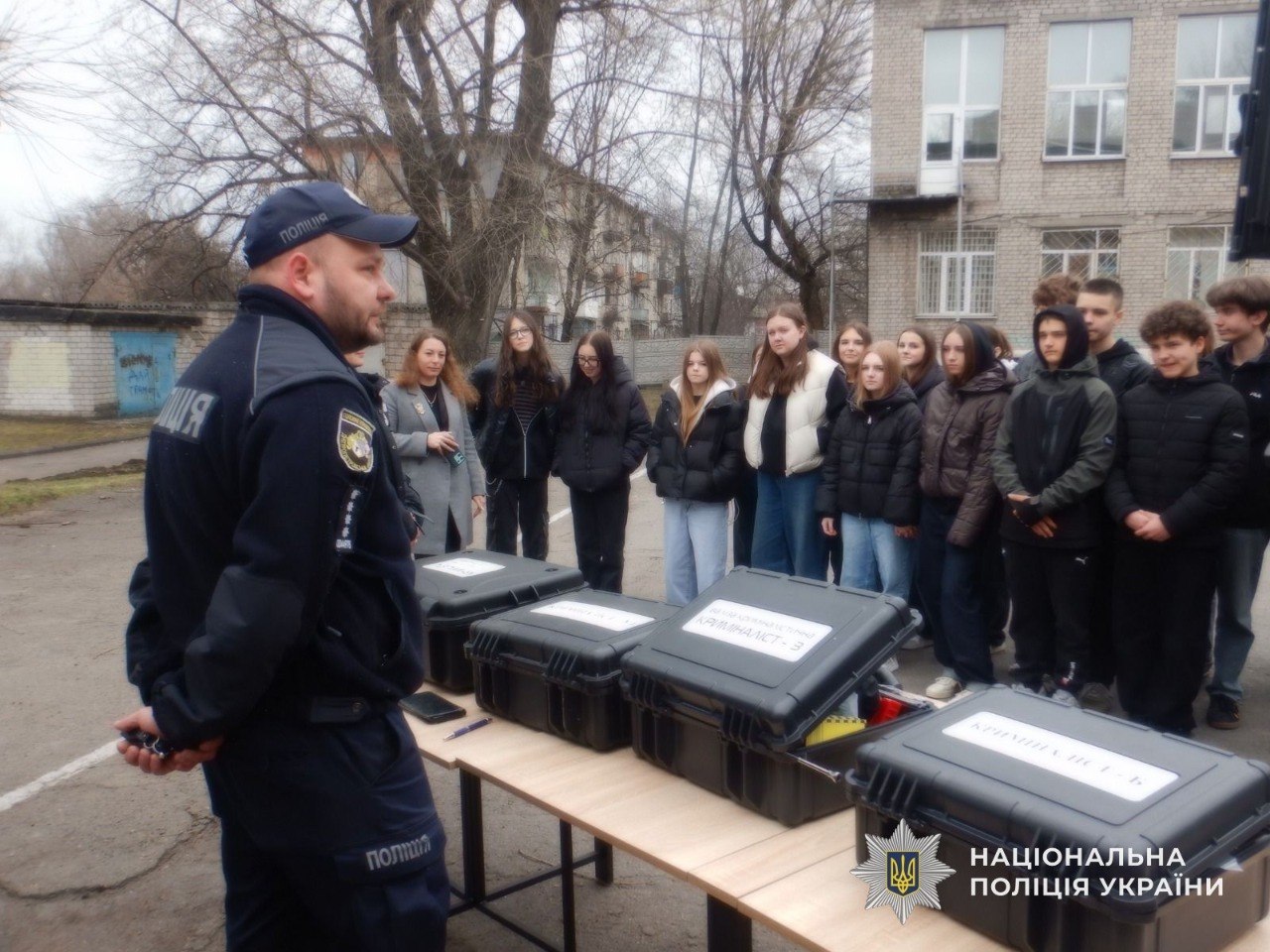 Главным событием встречи стала презентация мобильной лаборатории. Начальник сектора криминалистического обеспечения Кирилл Гаркуша и офицер службы образовательной безопасности Анастасия Наливайченко показали школьникам настоящий "офис на колесах". Эта техника оборудована по последнему слову техники для работы на местах правонарушений.