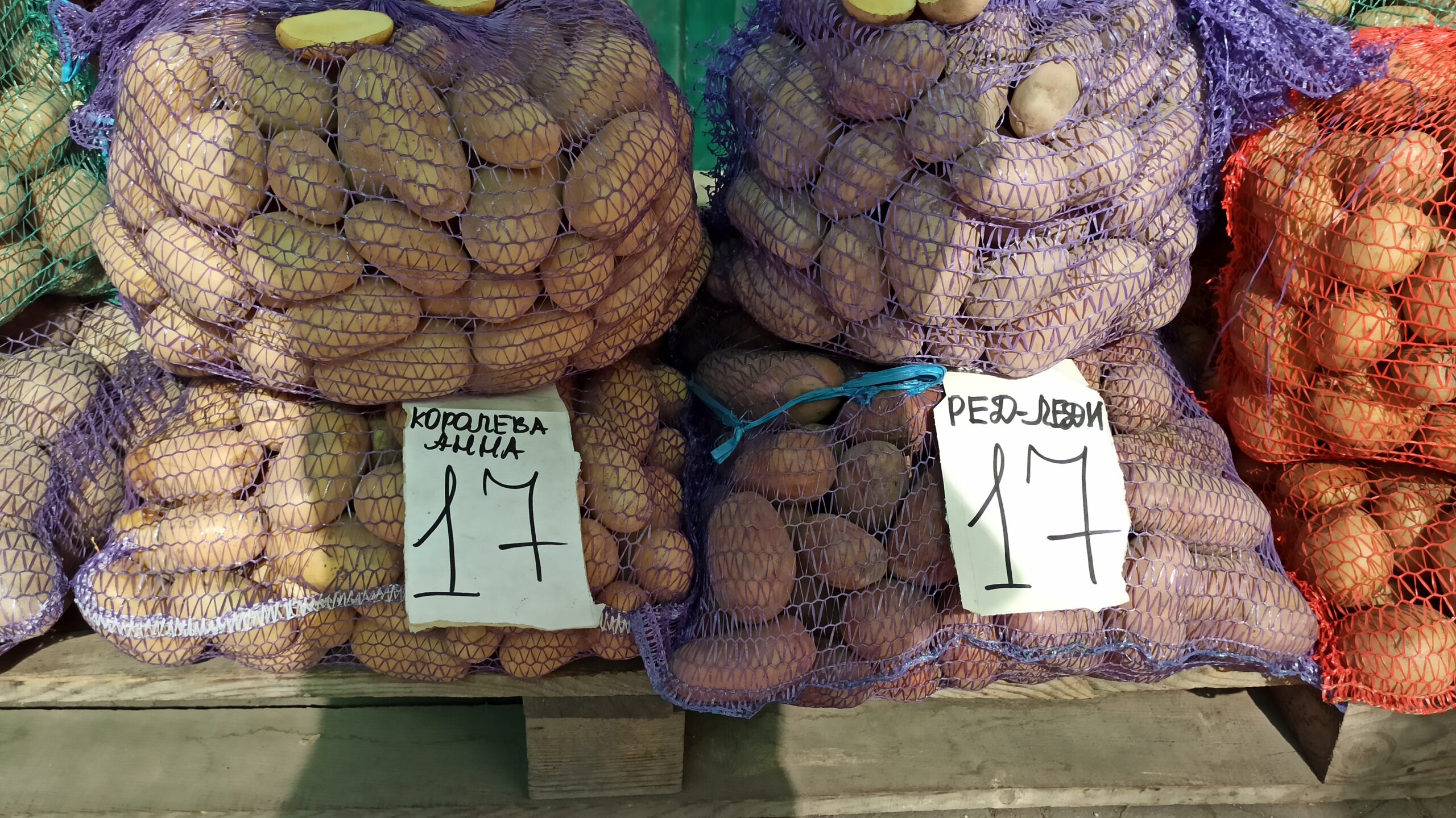 Картофель оптом стоит в среднем 16-20 грн/кг в зависимости от сорта. Его продают уже расфасованным в сетки.