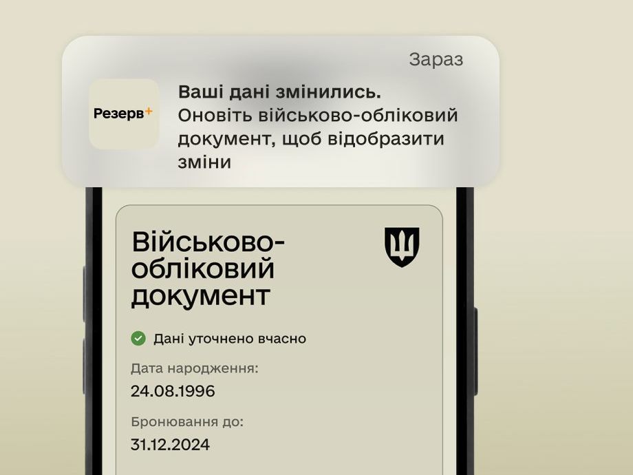 Теперь Резерв+ будет сообщать об изменении данных в реестре "Оберіг"