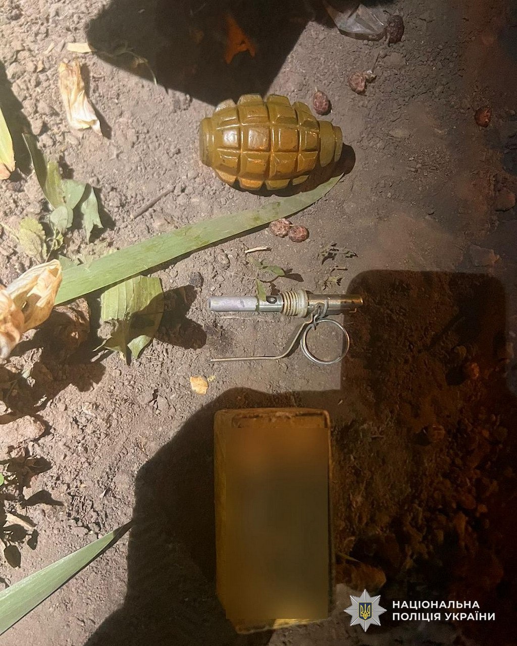 По сообщению граждан о агрессивном поведении, на место выехала следственно-оперативная группа отдела полиции №4 Днепровского районного управления полиции №1. Подозреваемого удалось найти, у него изъяли гранату Ф-1, запал УЗРГМ и тротиловую шашку. Оружие направили на экспертизу.