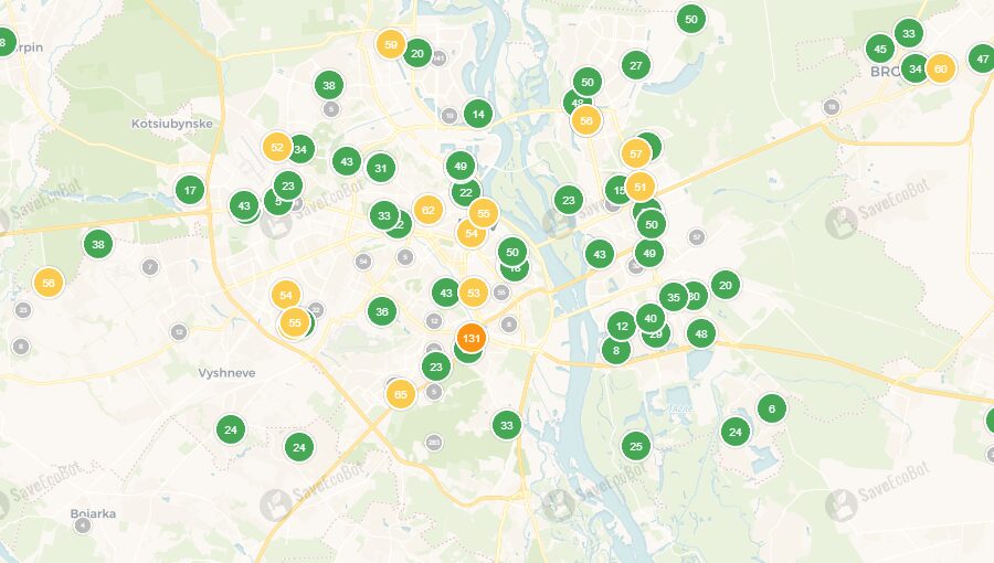 В Киеве много превышений желтого уровня, а в одном из районов — превышение оранжевого уровня. Если почувствуете дискомфорт при дыхании, используйте маски.
