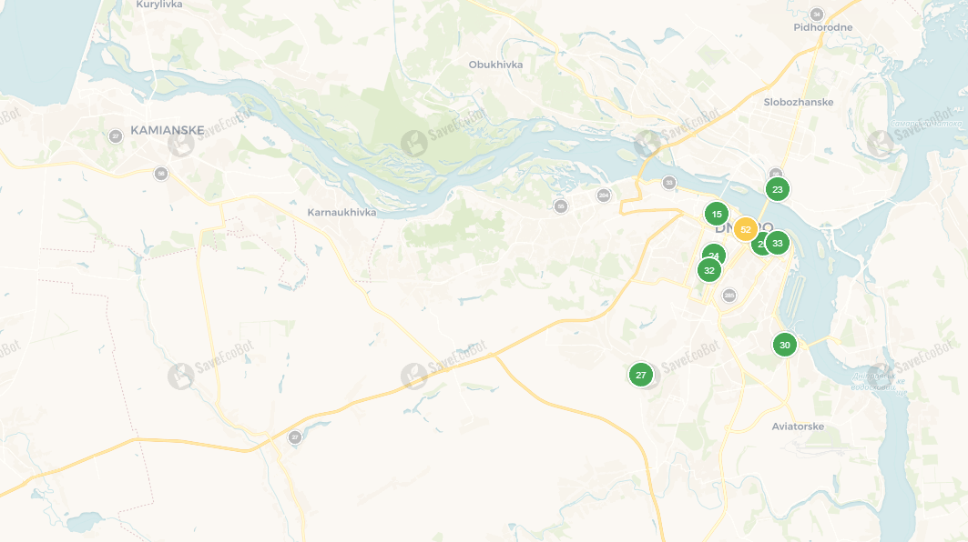 Сегодня, 29 июля 2025 года, по данным сервиса SaveEcoBot, в Каменском воздух чистый. В Днепре зафиксировано лишь одно превышение до желтого уровня, но угрозы для здоровья нет.