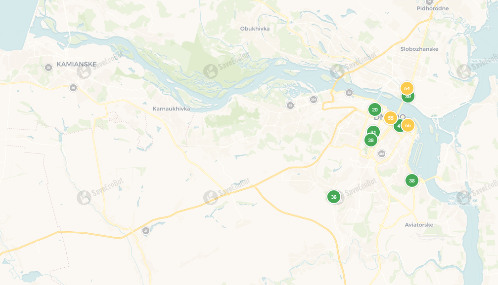 Сегодня, 6 августа 2025 года, по данным сервиса SaveEcoBot, в Каменском чистый воздух. В Днепре зафиксировано несколько превышений, но в целом город находится в зеленой зоне — угрозы для здоровья нет.