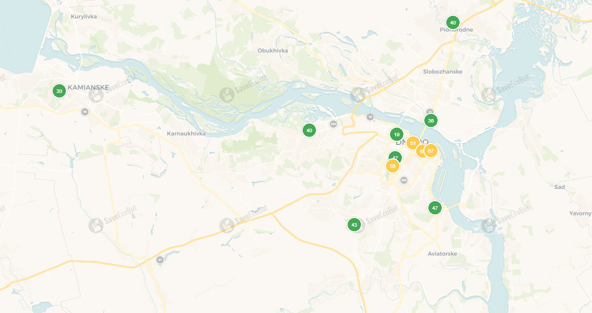Сегодня, 28 августа 2025 года, по данным сервиса SaveEcoBot, воздух в Каменском чистый. В Днепре фиксируются превышения желтого уровня, однако они незначительные и не представляют угрозы для здоровья.