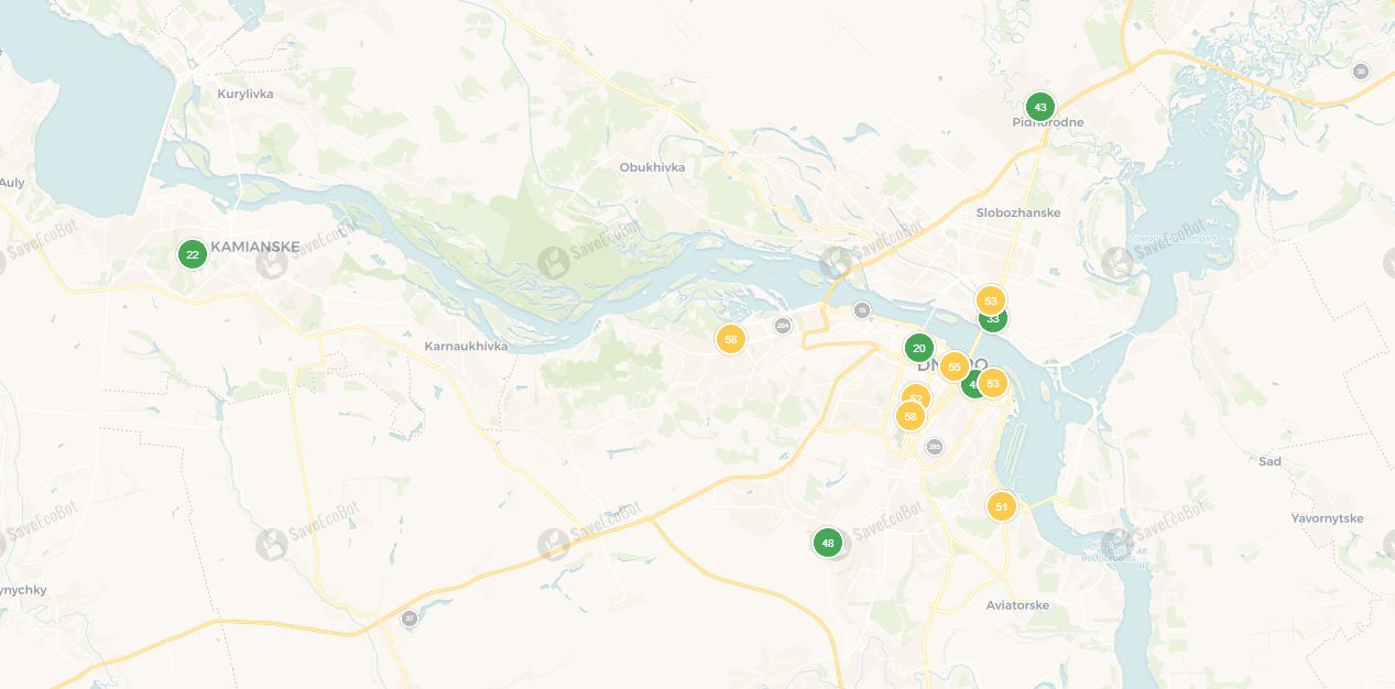 Сегодня, 2 сентября 2025 года, по данным сервиса SaveEcoBot, в Каменском чистый воздух. Превышений нет, угрозы для здоровья отсутствуют. А вот в Днепре зафиксировано много превышений желтого уровня. Если у вас есть проблемы с дыханием, используйте маски или оставайтесь дома.