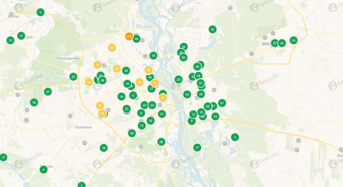 В Киеве зафиксированы несколько значительных превышений желтого и оранжевого уровня. Если почувствуете дискомфорт при дыхании, используйте защитные маски. Оставайтесь дома и держите окна закрытыми.