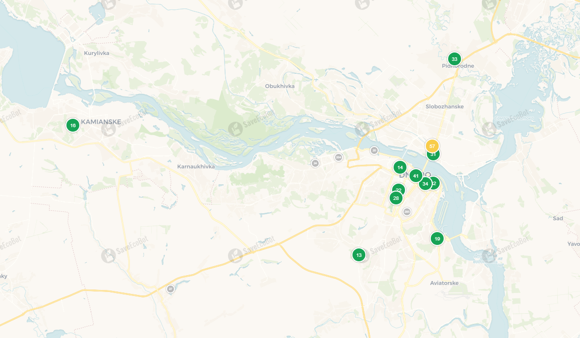 Сегодня, 15 сентября 2025 года, по данным сервиса SaveEcoBot, в Каменском воздух чистый. Никаких превышений и угроз для здоровья. В Днепре лишь в одном из районов незначительное превышение желтого уровня.