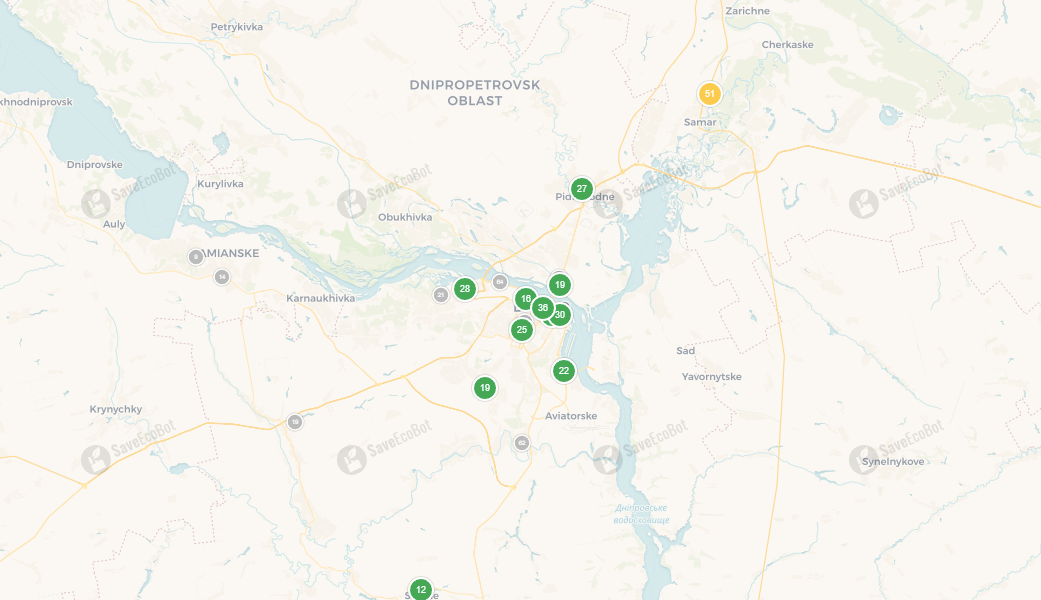 Сегодня, 9 мая 2025 года, по данным сервиса SaveEcoBot, в Каменском и Днепре воздух полностью безопасен. Лишь в районе Самары зафиксировано незначительное превышение допустимого уровня загрязнения, которое не представляет угрозы для здоровья.