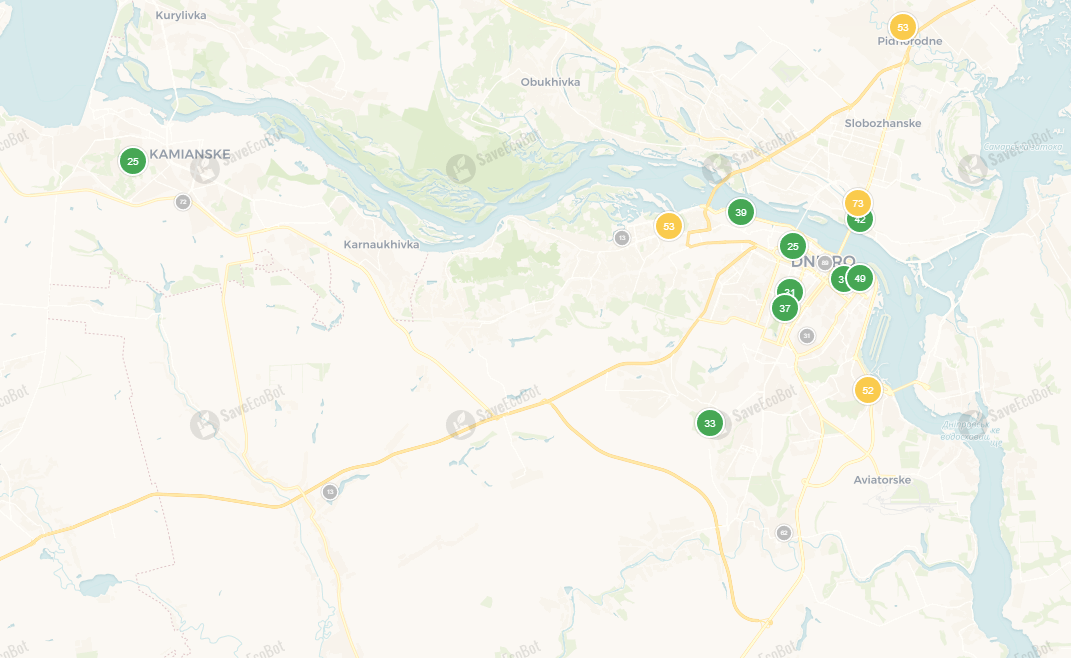 Сегодня, 18 апреля 2025 года, по данным сервиса SaveEcoBot, в Каменском и Днепре воздух в целом безопасен. Лишь в некоторых районах Днепра зафиксированы превышения — если почувствуете дискомфорт при дыхании, используйте маски, фильтрующие мелкие частицы.