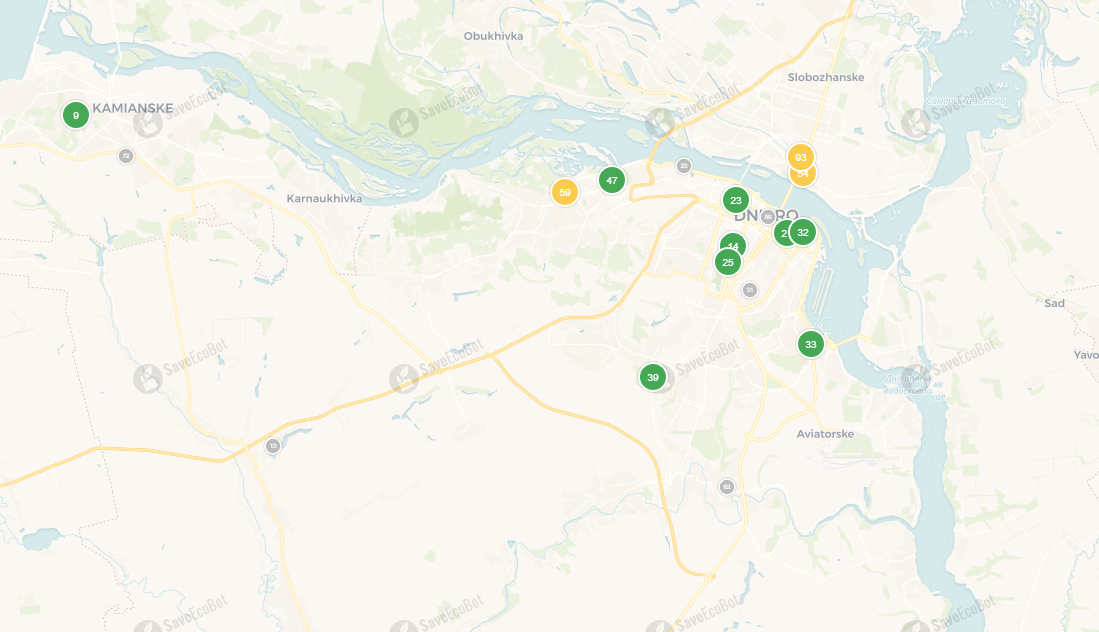 Сегодня, 16 апреля 2025 года, по данным сервиса SaveEcoBot, в Каменском и Днепре воздух вполне безопасный. Лишь в некоторых районах Днепра зафиксированы незначительные превышения, но они не представляют серьезной угрозы для здоровья.