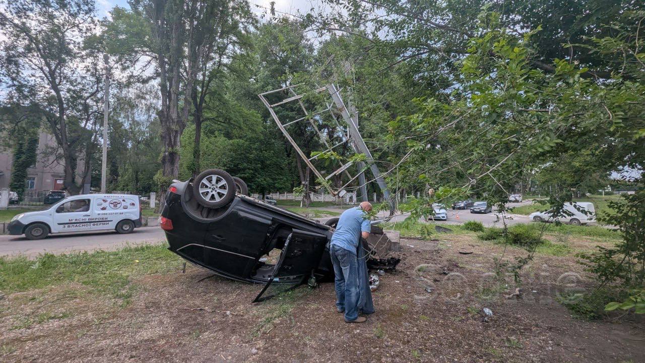 Ужасная авария в Каменском: автомобиль Ford перевернулся на крышу