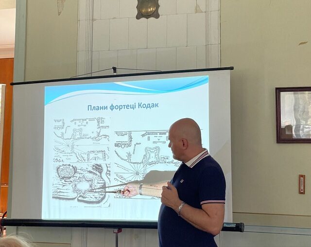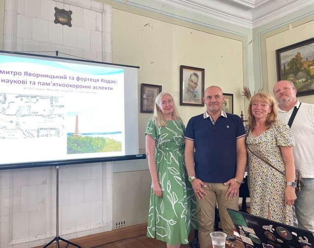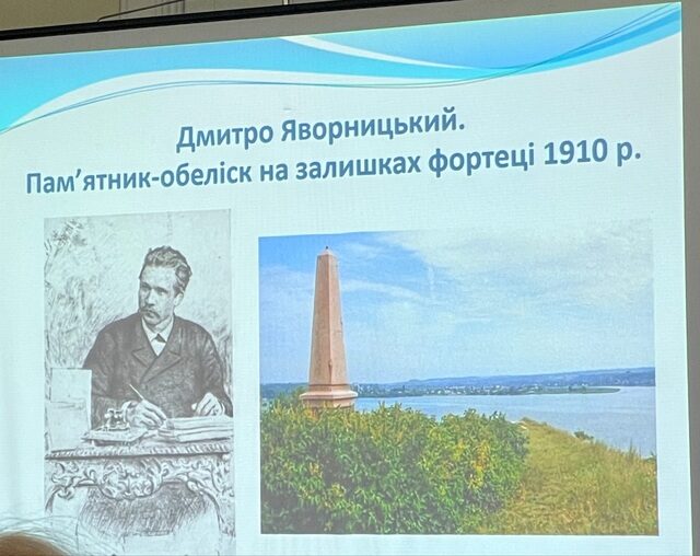 Заведующий музеем, известный историк Максим Кавун, прочитал для гостей увлекательную лекцию о вкладе Яворницкого в исследование остатков легендарной крепости Кодак. Он рассказал, как ученый инициировал установку обелиска на ее валах.
