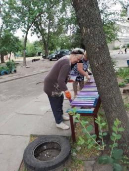 - квартальный комитет №3 (Суксина С.М.) — убрана детская площадка по ул. Персиковой, 106, покрашены лавочки для сидения, качели, турникеты.