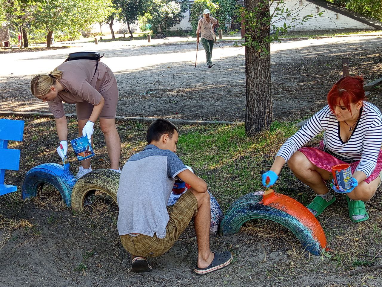 - обновили детскую площадку – ее элементы покрасили в яркие цвета, что добавило жителям хорошего настроения;