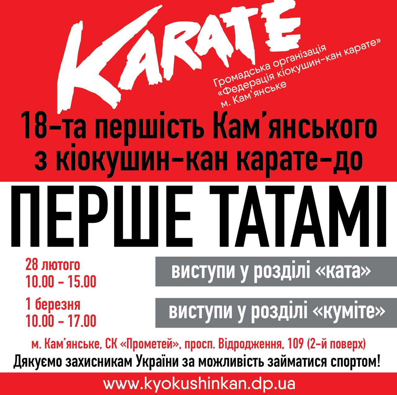 В Каменском пройдут соревнования "ПЕРВОЕ ТАТАМИ" для будущих чемпионов карате