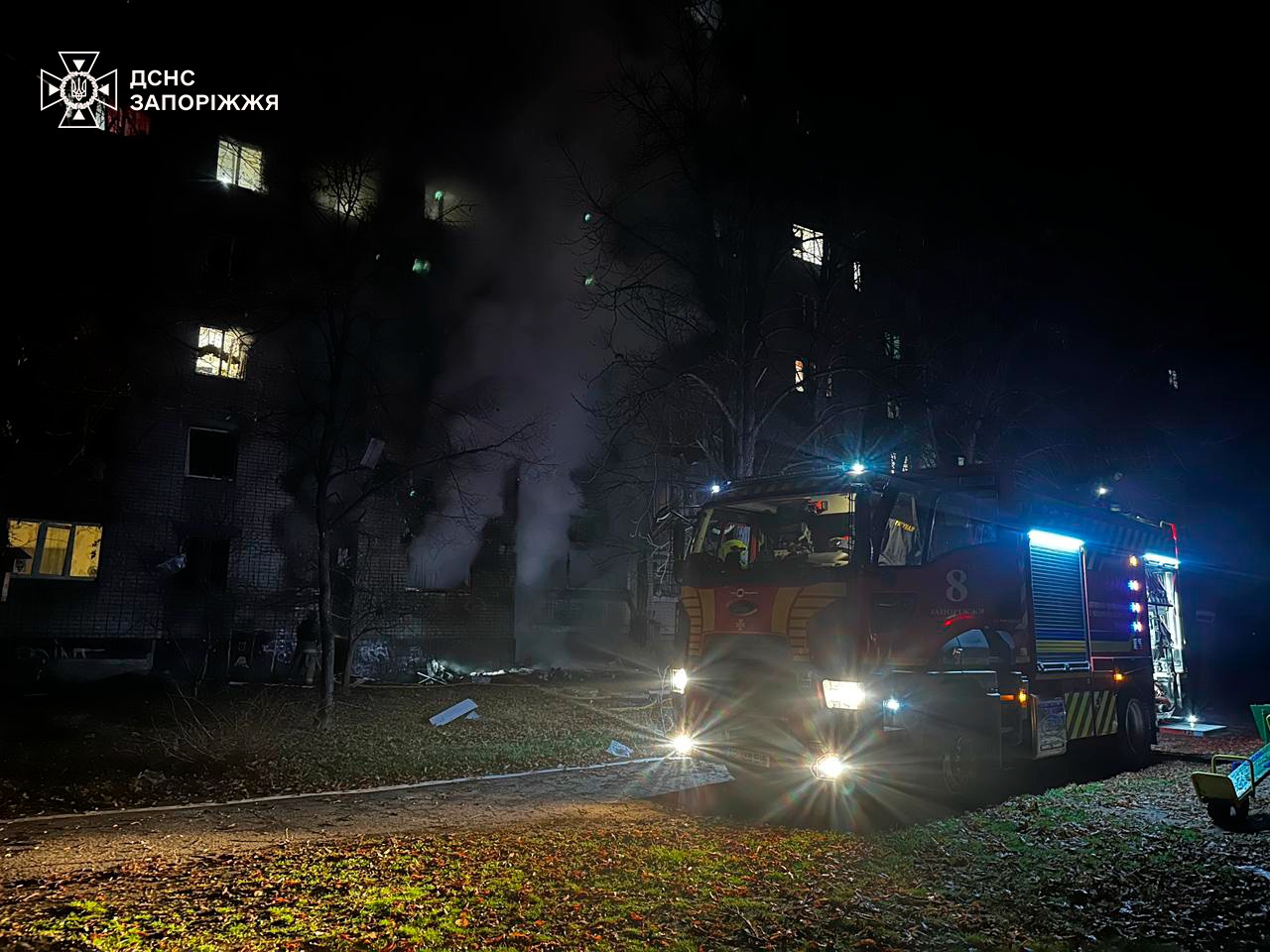 Ночью 25 ноября враг нанес массированный удар по городу Запорожью. Как сообщили в ГСЧС, вследствие попаданий повреждены многоэтажные жилые дома, автозаправка, магазин и несколько автомобилей. В разных районах города возникли пожары.