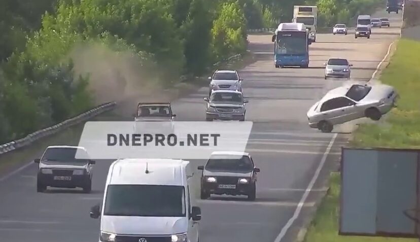 Жесткое ДТП на мосту в Каменском: Ланос перевернулся в воздухе