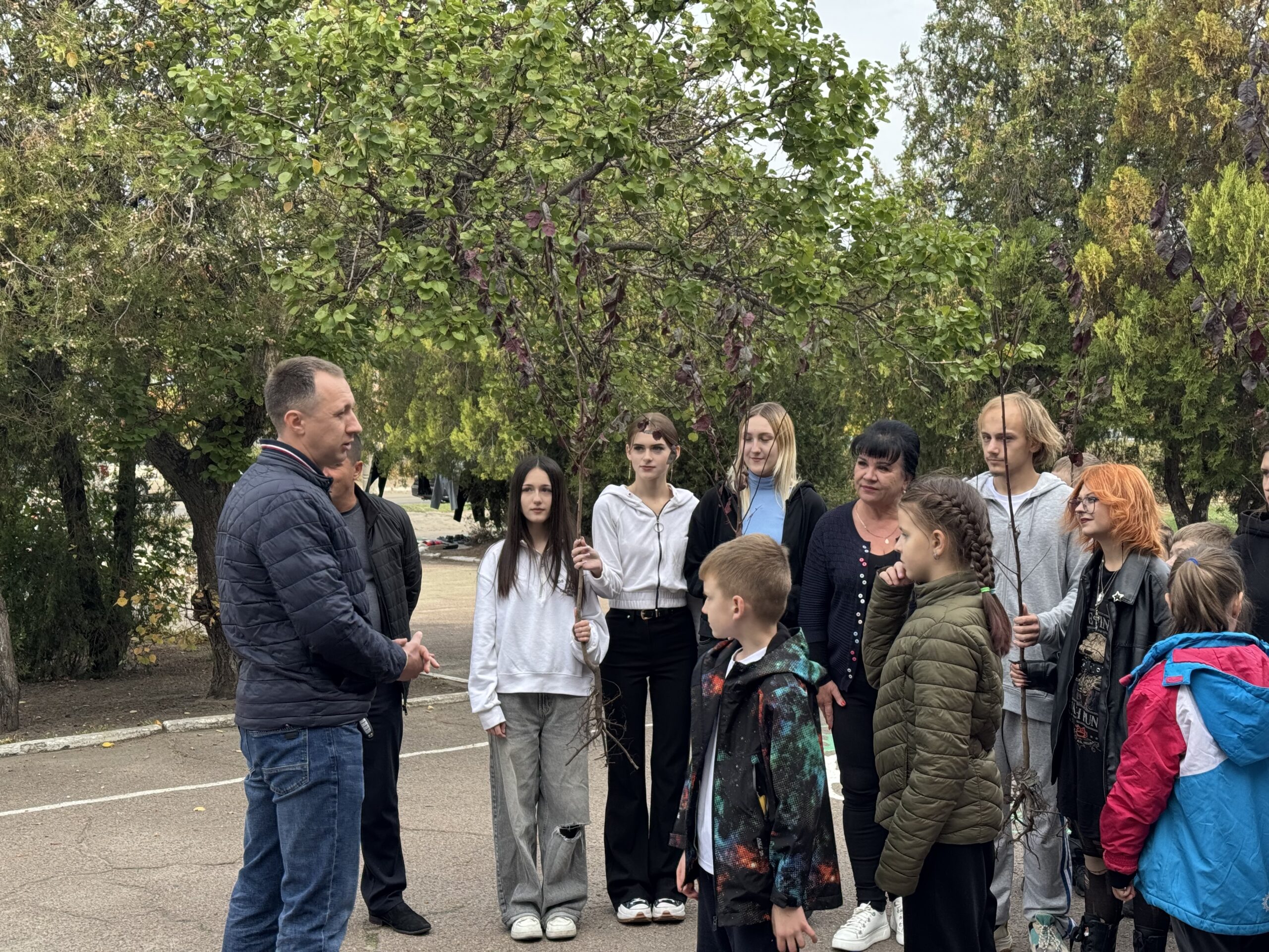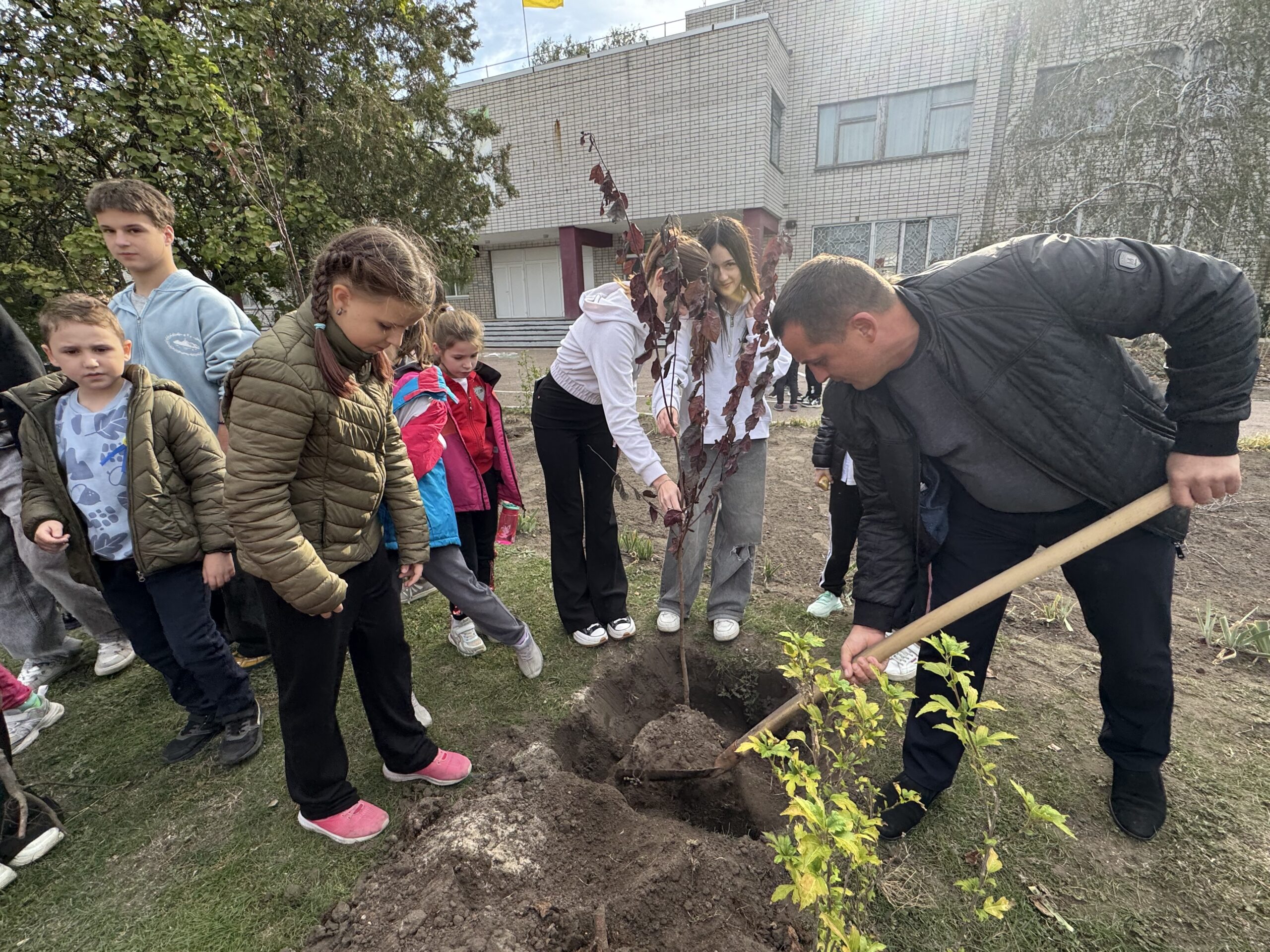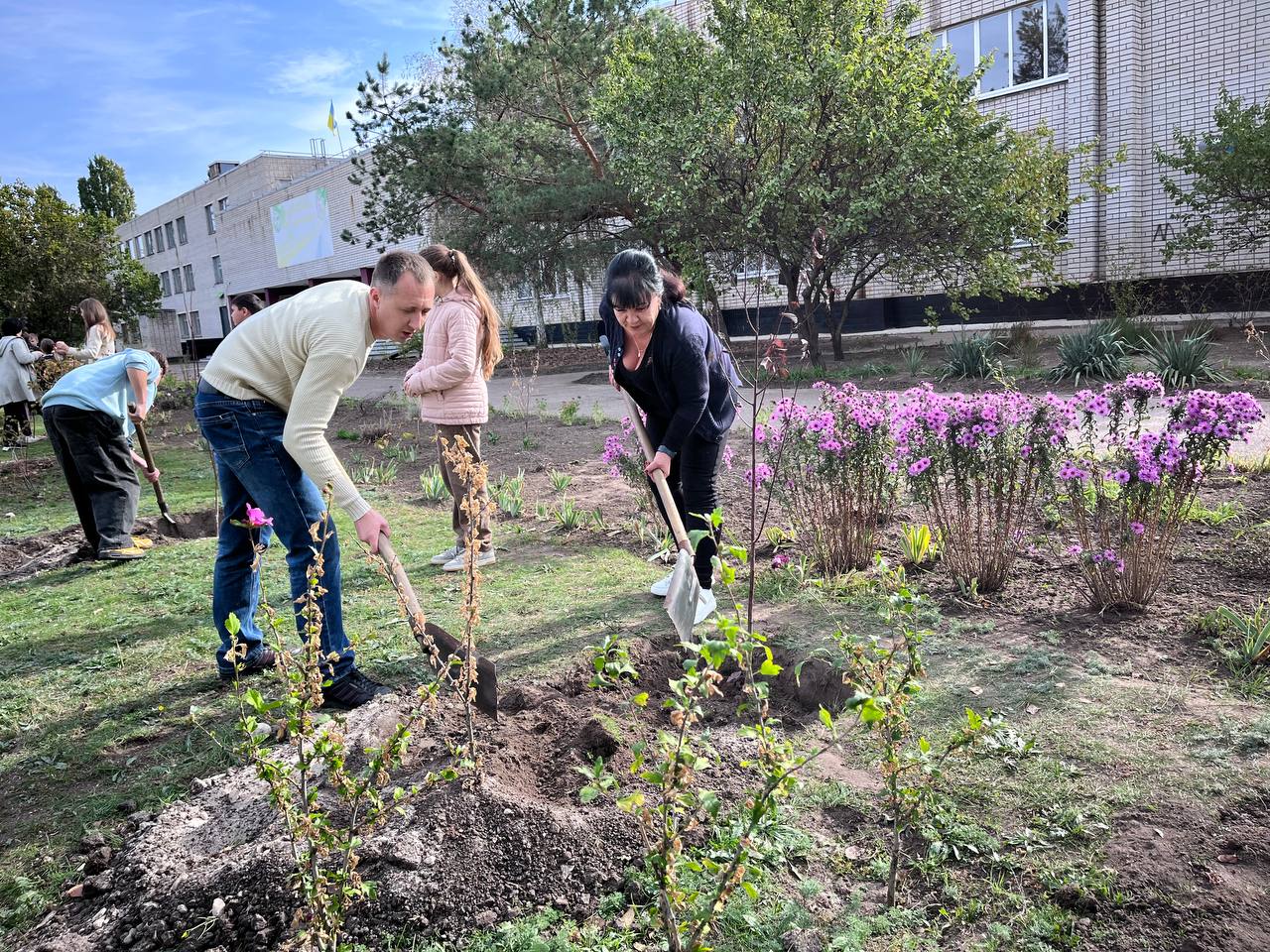 К акции присоединились ученики, педагоги и представители общественной организации “Пчела” — Виталий Полищук и Дмитрий Валах. Молодые саженцы, высаженные совместными усилиями, станут живым символом памяти, мужества и любви к Украине.
