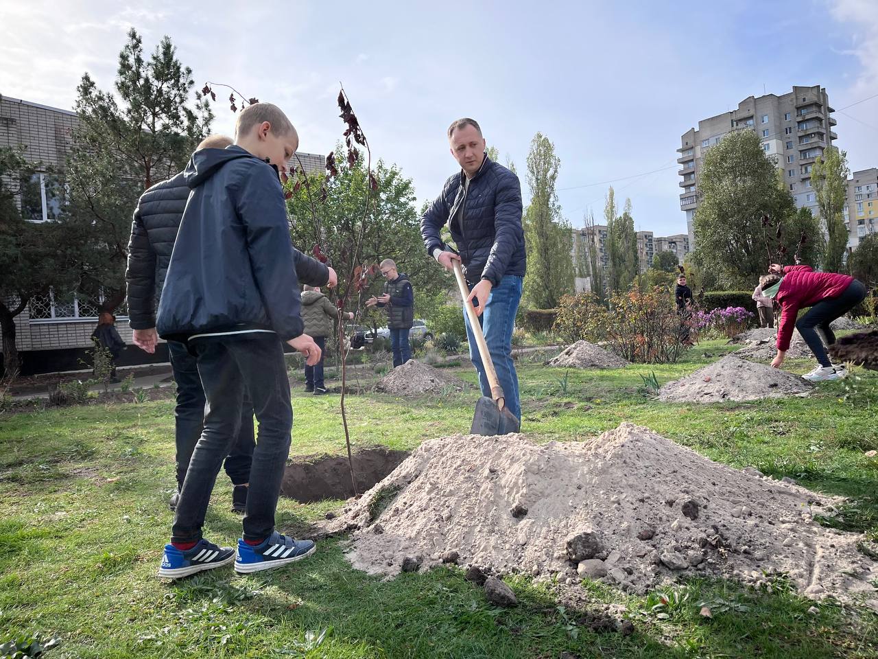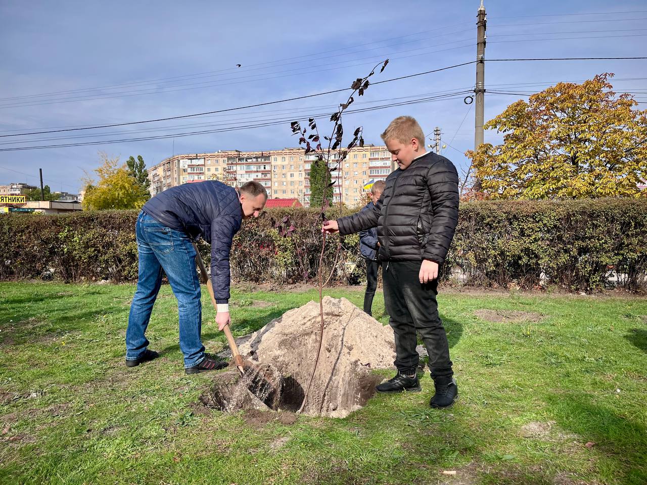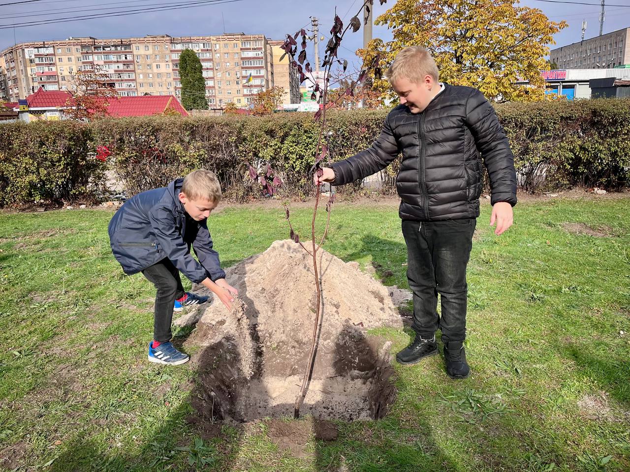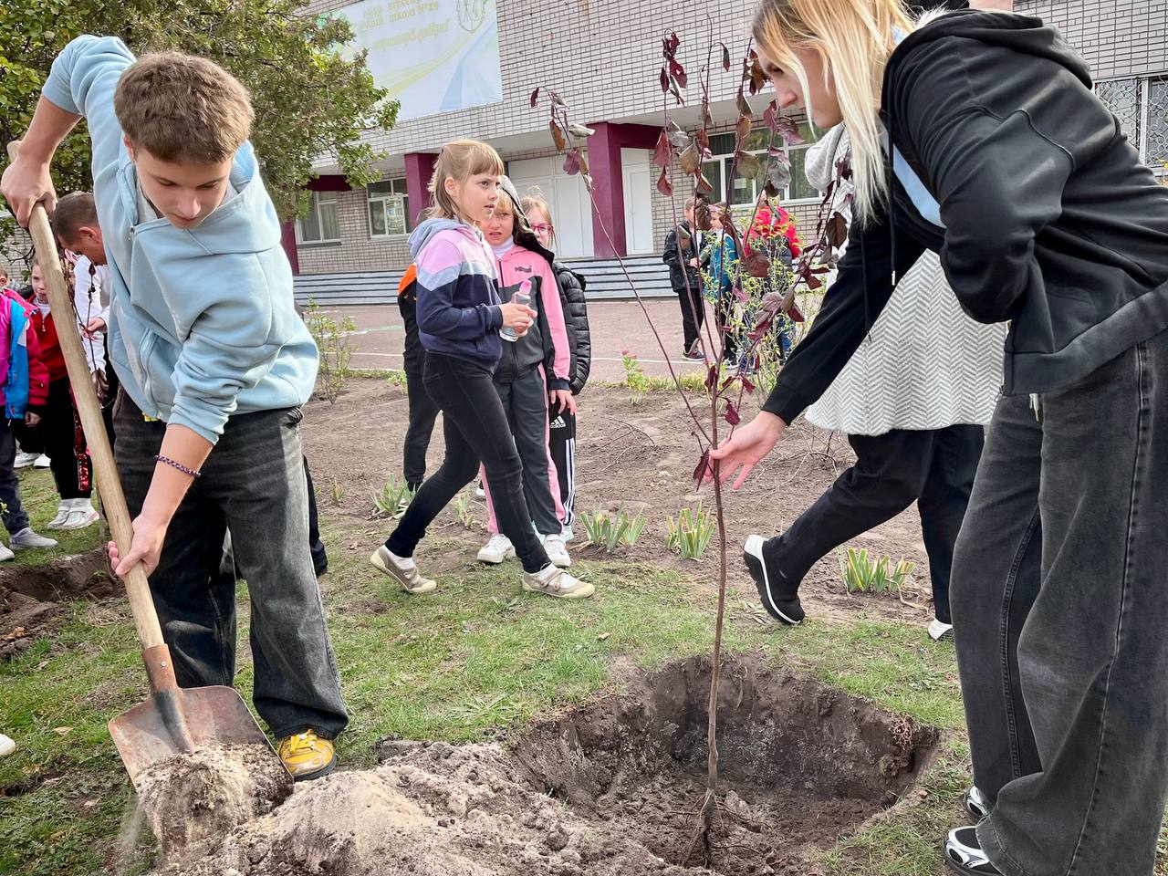 К акции присоединились ученики, педагоги и представители общественной организации “Пчела” — Виталий Полищук и Дмитрий Валах. Молодые саженцы, высаженные совместными усилиями, станут живым символом памяти, мужества и любви к Украине.