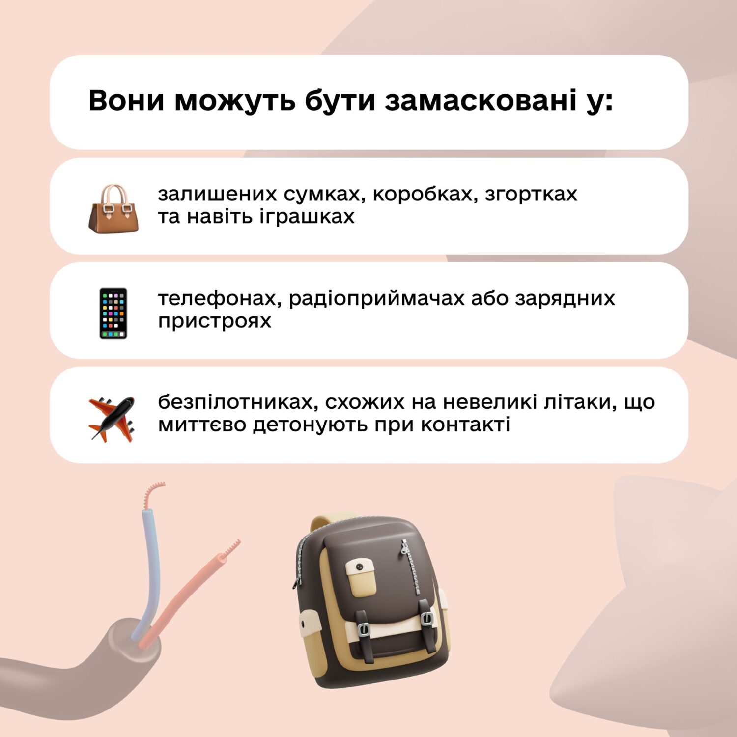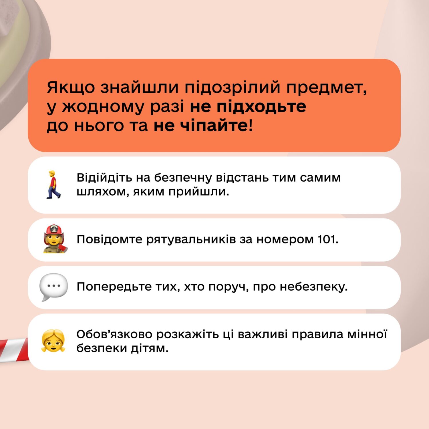 "Взрывоопасные предметы могут быть замаскированы даже в самых обычных бытовых вещах — например, в детских игрушках. Именно поэтому крайне важно знать и соблюдать основные правила минной безопасности, ведь они могут спасти вам жизнь", — подчеркнули в ГСЧС, подготовив инструкцию.