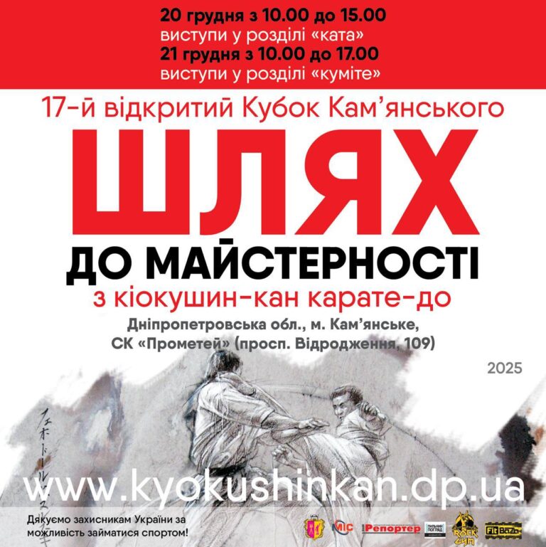 В Каменском, городе с богатыми спортивными традициями, готовятся к проведению очередного важного турнира. 20–21 декабря 2025 года состоится традиционный ежегодный открытый 17-й Кубок Каменского по киокушин-кан карате-до "ПУТЬ К МАСТЕРСТВУ". Турнир соберет спортсменов разных возрастов...