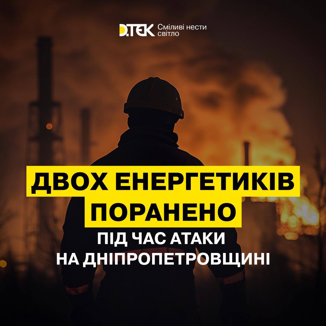 Двое работников ДТЭК пострадали на Днепропетровщине в результате атаки дронами