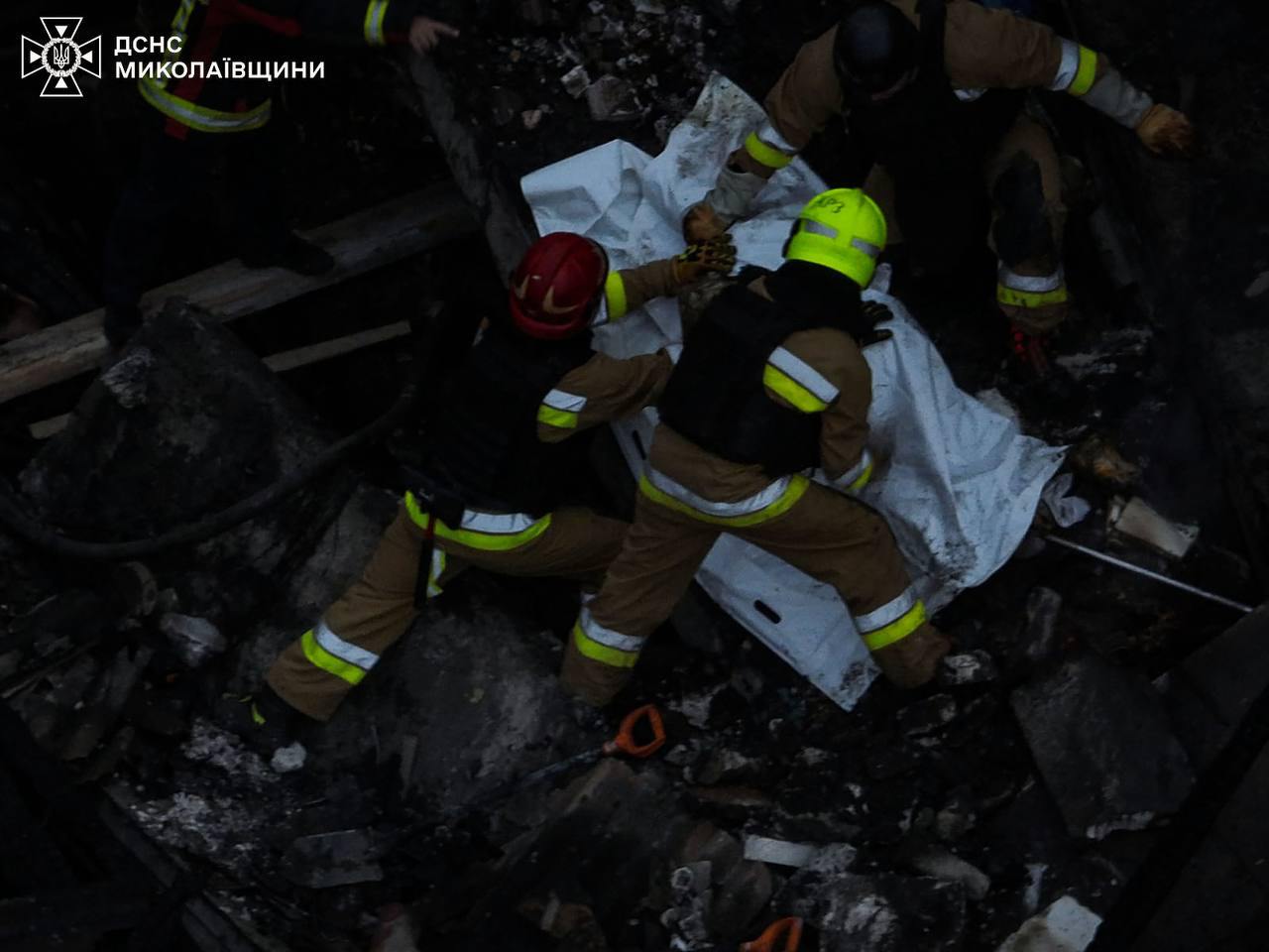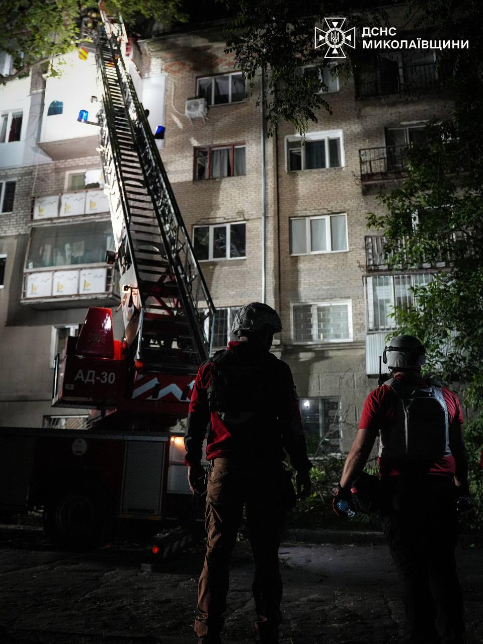 В результате ночной атаки дронами В Николаеве вражеский дрон попал в пятиэтажный жилой дом, что привело к пожару, информирует ГСЧС. Два верхних этажа дома полностью разрушены, остальные — получили повреждения. По состоянию на 6 утра спасатели деблокировали тело погибшего мужчины 1948 года рождения. Из-под завалов удалось спасти двух женщин: одну госпитализировали в тяжелом состоянии, с другой работают психологи. Вообще получили ранения пять человек, среди них — подросток. Из дома эвакуированы 210 жителей.