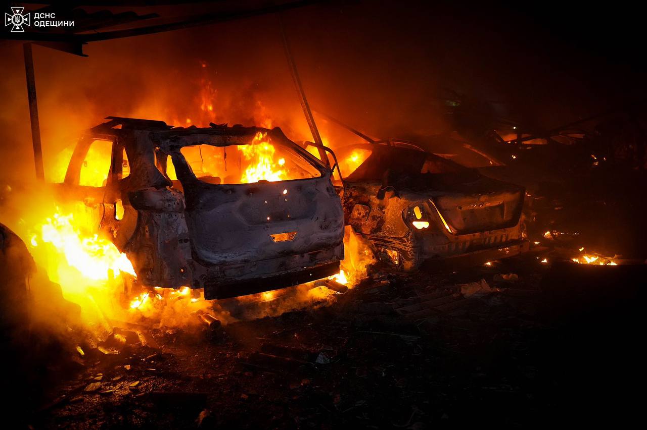 После удара БпЛА в Одессе возникли несколько пожаров, в частности горела автостоянка, расположенная среди многоэтажек. Огонь охватил два десятка автомобилей. Пожар удалось быстро ликвидировать и не допустить распространения пламени на плотно припаркованные автомобили рядом.