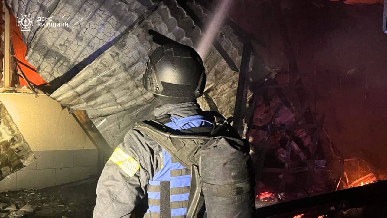 В Броварах обломки вражеского БПЛА упали на двухэтажное здание мини-маркета. В результате произошел пожар и частичное разрушение здания.