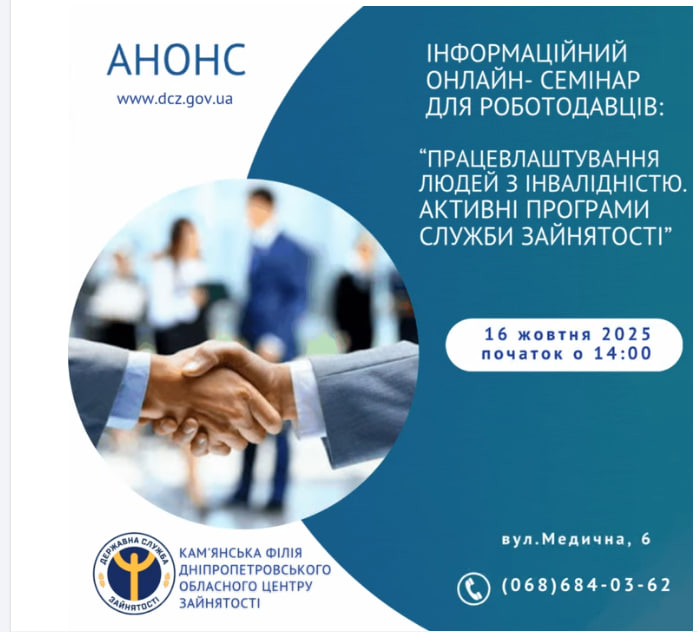 Кам’янські роботодавці запрошуються на онлайн-семінар з працевлаштування людей з інвалідністю