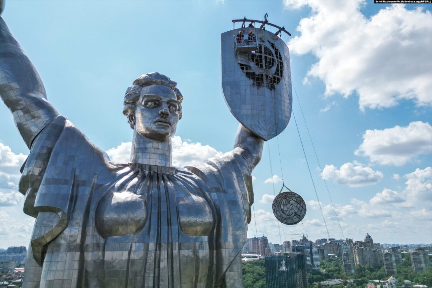 9.Металевий Тризуб, який замінив радянський герб на щиті монумента “Батьківщина-мати” в Києві, має розміри 4,5 на 7,5 метрів і важить близько 500 кілограмів.