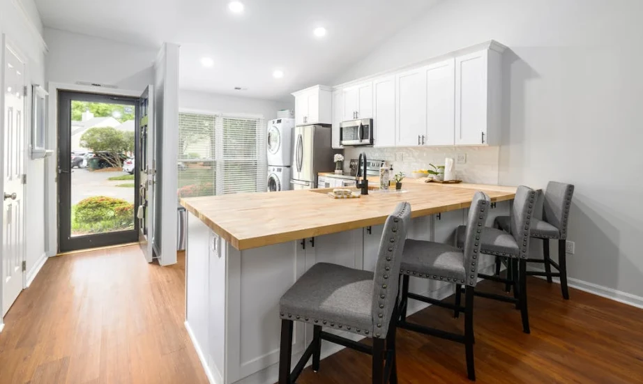 Кухня – це зона підвищеного навантаження, тому матеріали мають бути не лише красивими, а й зносостійкими. Дерев’яні стільці є класикою, вони довговічні та екологічні, проте без м’яких подушок можуть здаватися жорсткими. Металеві каркаси забезпечують максимальну міцність і чудово вписуються в сучасні інтер’єри, але вимагають якісного покриття, стійкого до вологи.