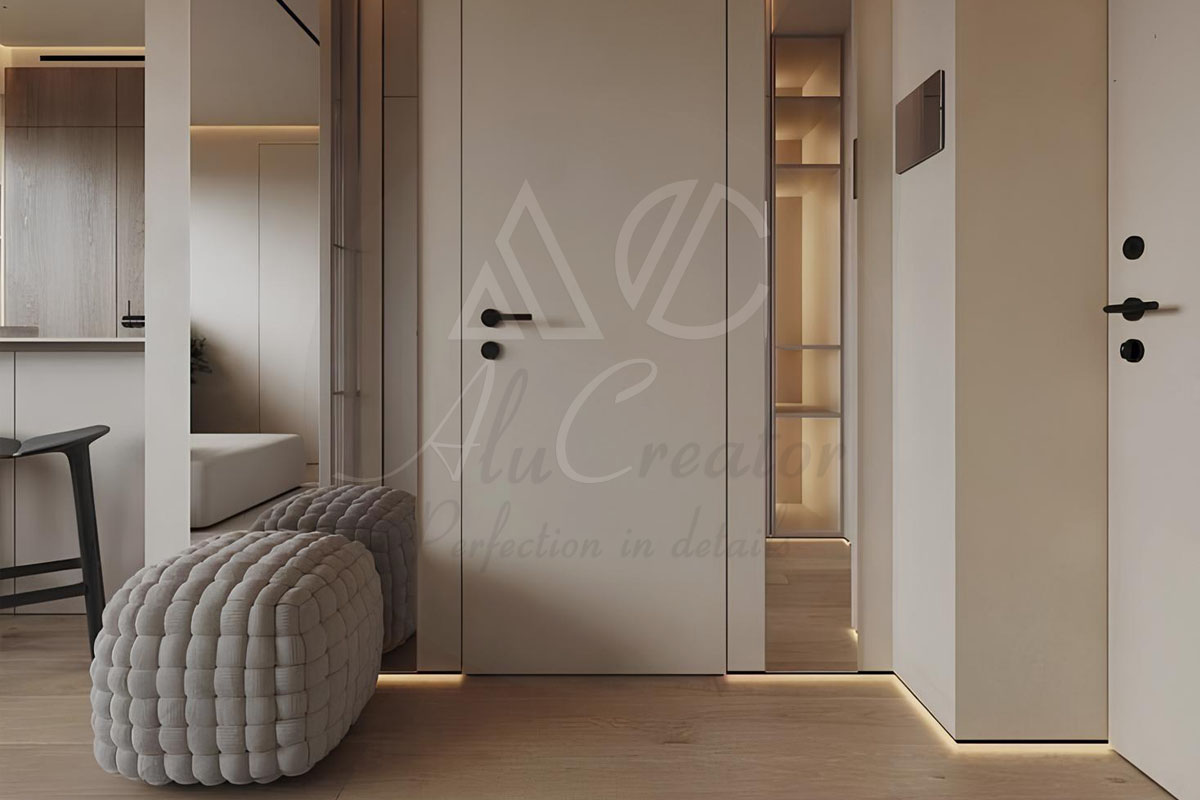 🔷 У квартирах із обмеженим простором, де кожен сантиметр має значення, приховані двері можуть суттєво вплинути на зовнішній вигляд інтер’єру. Замість того, щоб займати місце традиційними дверима, приховані конструкції, вбудовані в стіну, створюють ілюзію більшого простору, що особливо важливо в квартирах-студіях або невеликих кімнатах. Завдяки цьому вдається уникнути візуального безладдя та звільнити більше місця для меблів та декору.