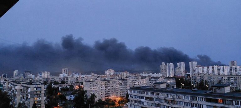 Київ накрила велика хмара диму від пожеж, викликаних російською атакою (фото)