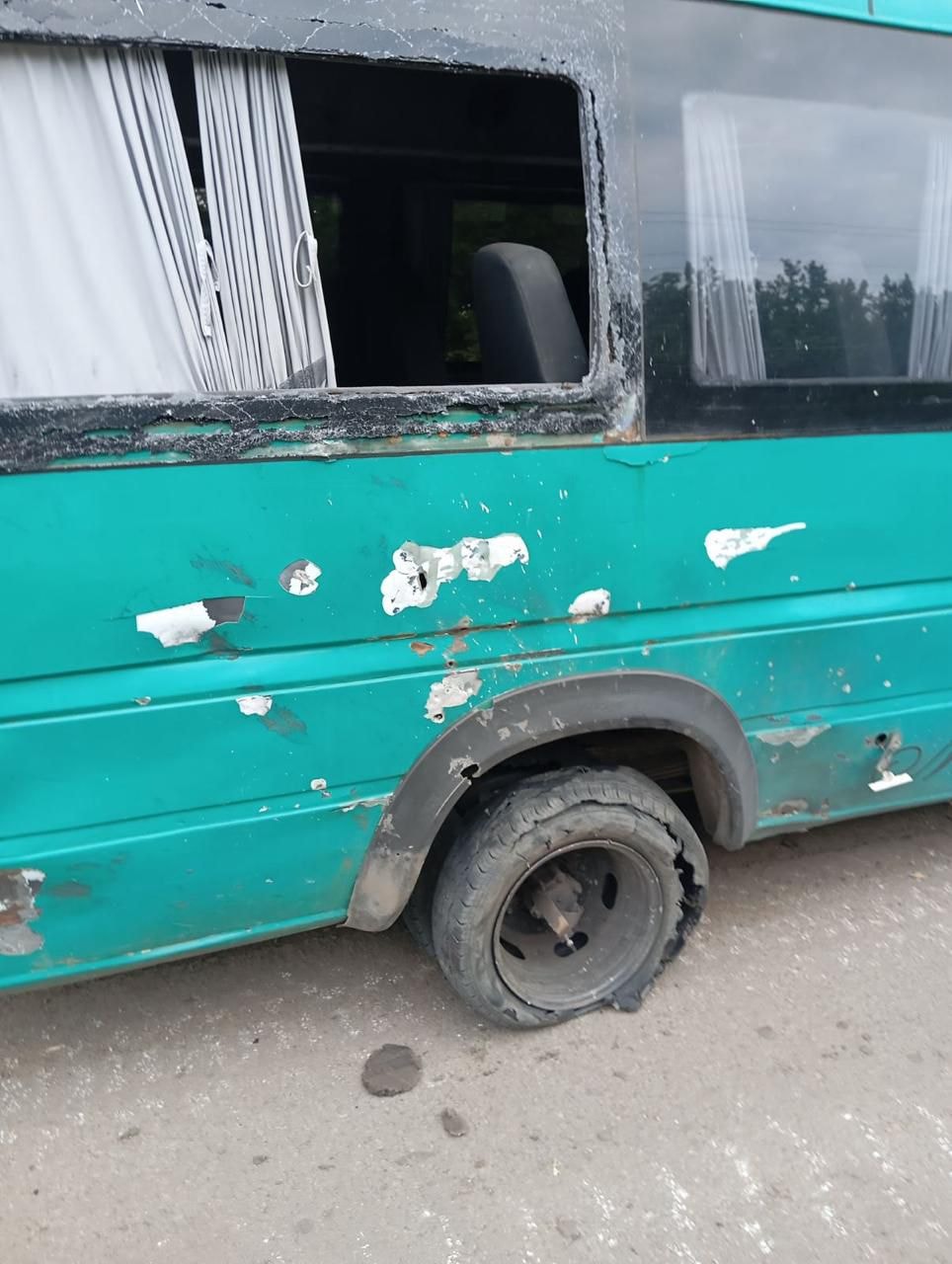 Окупанти скинули з дрона-бомбера боєприпас осколково-фугасної дії, який влучив у землю поряд транспортного засобу. Внаслідок атаки мікроавтобус зазнав суттєвих пошкоджень: у нього зокрема пробиті задні колеса, уражений паливний бак, вибиті вікна, понівечений салон, пробитий кардан.