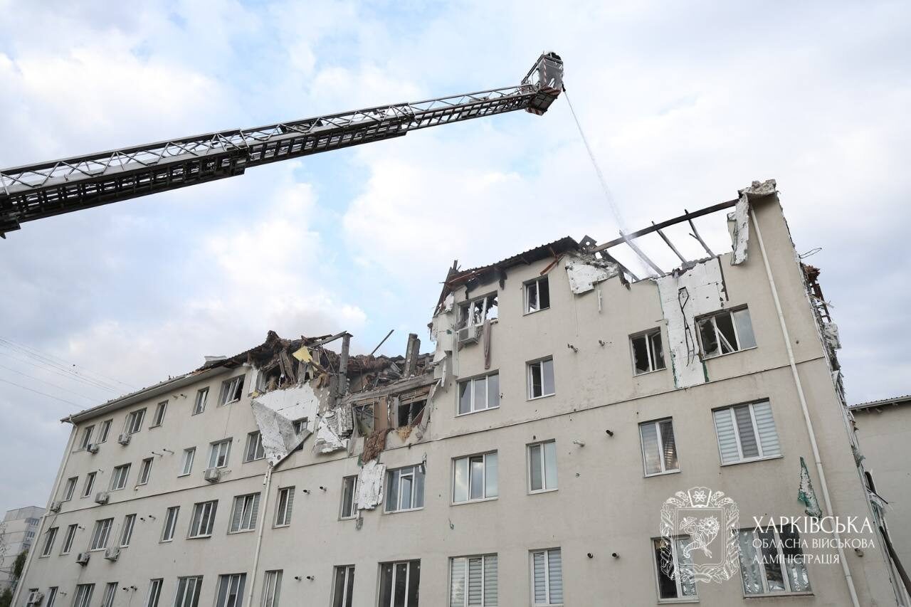 Внаслідок влучань сталися руйнації та пожежі на першому, третьому та п’ятому поверхах на загальній площі 900 м кв.