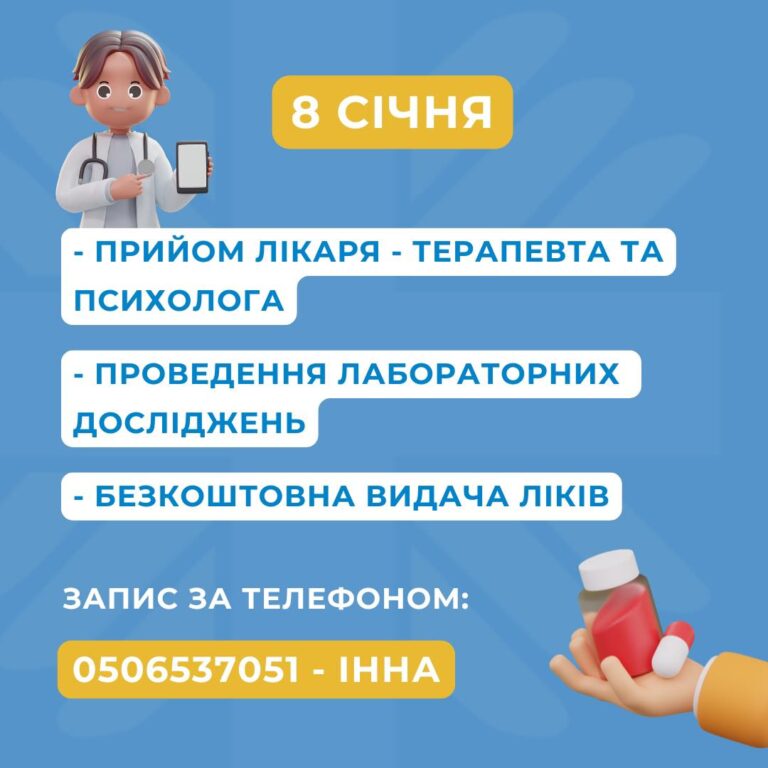 Своєчасна перевірка здоров’я та емоційна підтримка сьогодні є критично важливими для кожного. 8 січня мешканці Кам’янського мають можливість отримати кваліфіковану допомогу абсолютно безкоштовно. У цей день у нашому місті працюватиме мобільна медична команда міжнародної організації...